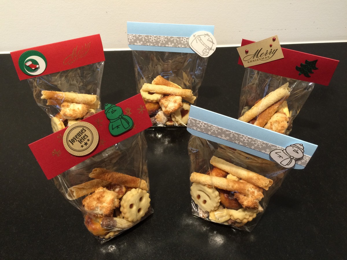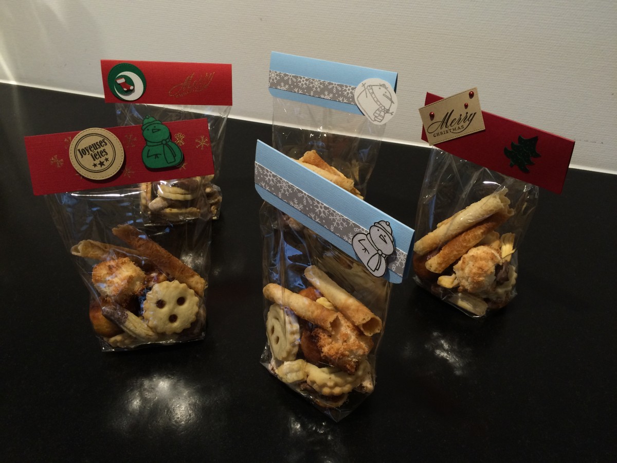 - Mesurez la largeur de votre sachet à biscuits. Ici, les sachets faisaient environ 15 cm. J’ai découpé mes cartes à 15.8 cm et elles font 10 cm de largeur (pour bien pouvoir les plier sur mes sachets).