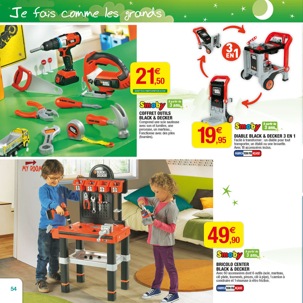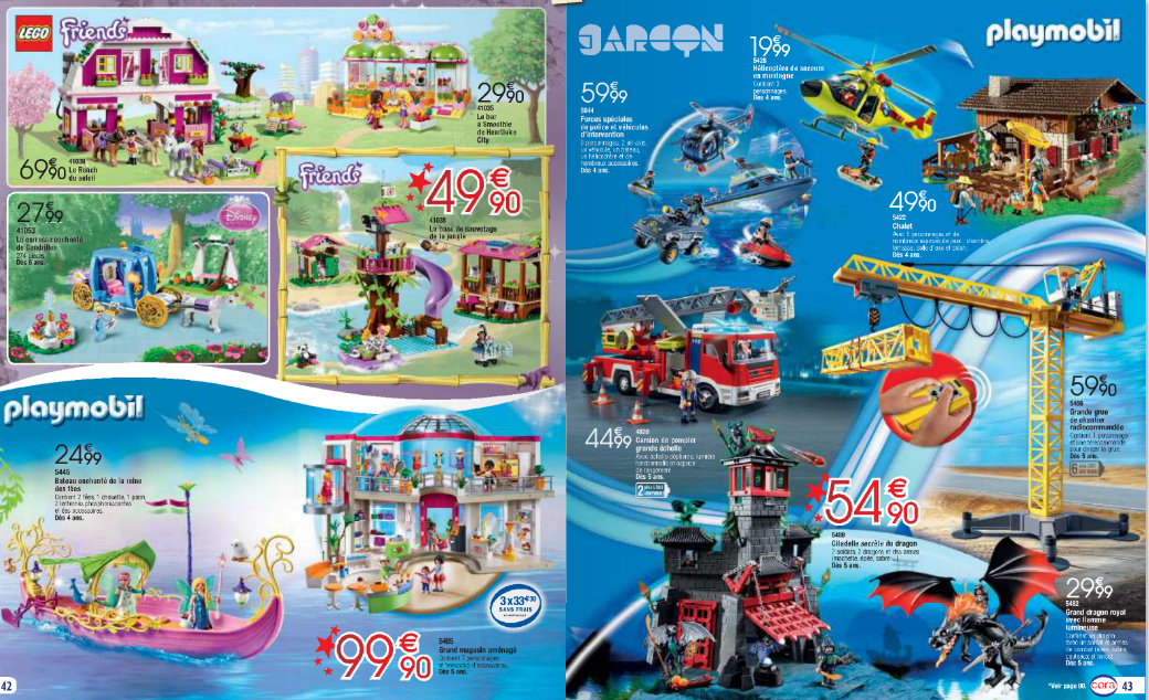 Bon, je trouve que la cuisine du petit garçon a toujours une couleur bien « garçon », alors que celle d’à côté est clairement dédiée aux filles … Tout le catalogue n’est d’ailleurs pas dépourvu du sexisme. Vous en retrouverez encore. Mais on dira à leur défense qu’ils ont repensé leur catalogue selon des chapitres par thématiques et non plus selon filles/garçons.