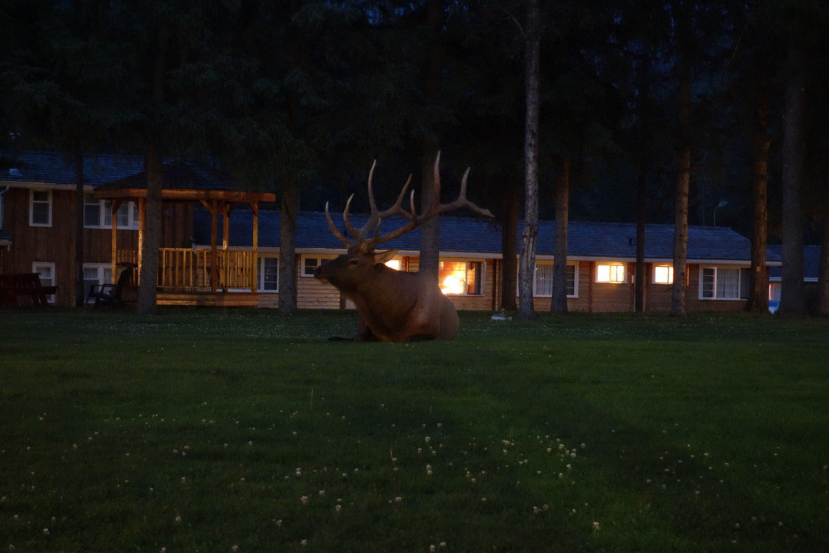 C’est à Jasper que nous avons eu la magnifique surprise de voir, au milieu de nos bungalows, un magnifique wapiti.