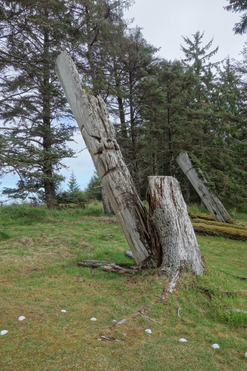 Mais dès le lendemain, nous avons trouvé cet endroit magique. Nous avons visité Louise Island, la troisième plus grande île de l’archipel. Cet endroit est riche historiquement : de la plus ancienne population Haida à la deuxième guerre mondiale. En effet, nous y découvrons deux anciens villages Haida, Skedans et Skidegate (avec des totems), mais aussi une ancienne zone de déforestation pour le compte de la deuxième guerre mondiale.